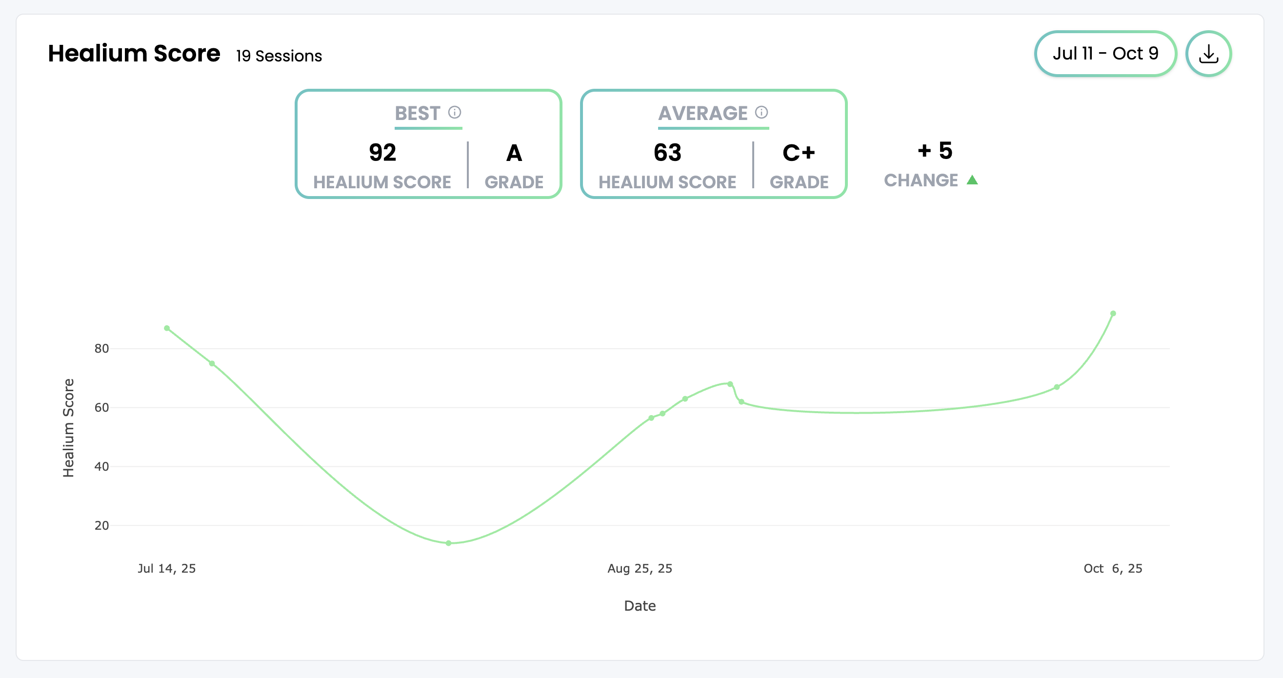You can change the selected date range and download the session data just like you can for the Healium Score box.