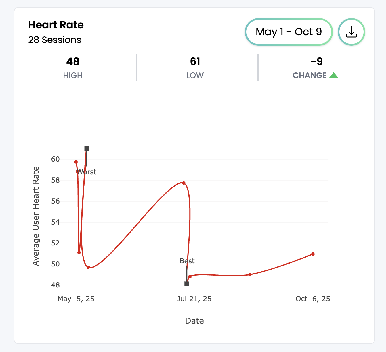 This chart is a little counter-intuitive because the lower the Heart Rate, the better.